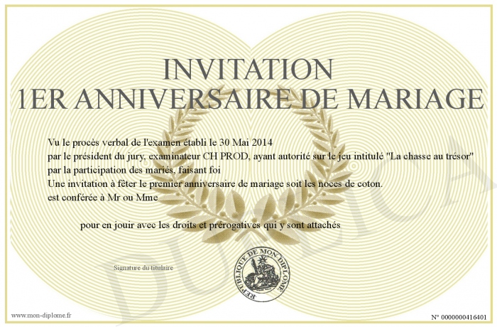 Envoyez par email votre INVITATION 1ER ANNIVERSAIRE DE MARIAGE personalisé