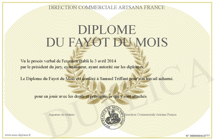 Envoyez par email votre Diplôme du Fayot du Mois personalisé