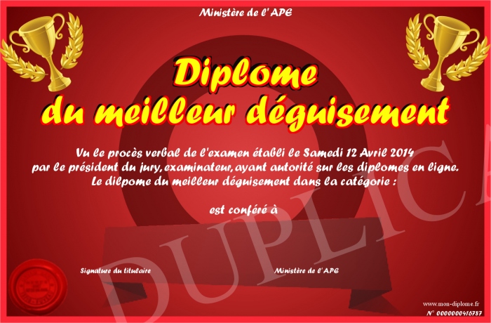 • Diplôme du meilleur déguisement