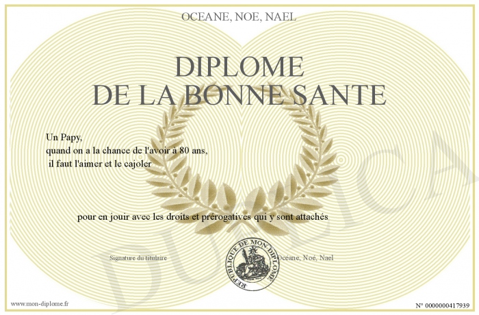 Envoyez par email votre Diplôme de la bonne santé personalisé