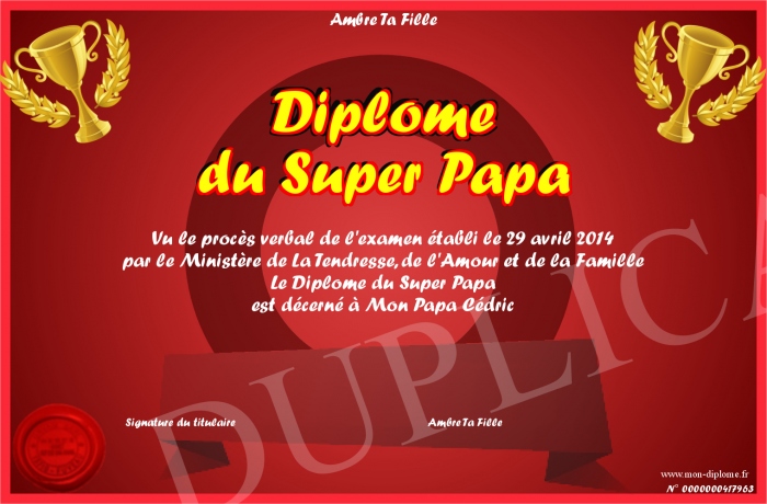 Envoyez par email votre Diplôme du Super Papa personalisé