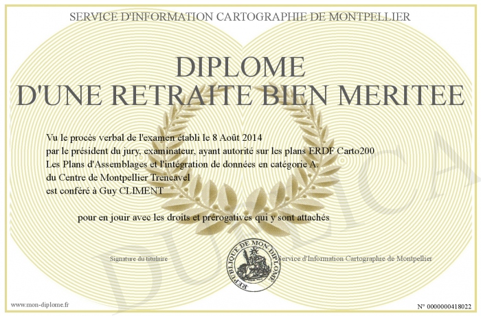 Envoyez par email votre Diplôme d'une Retraite Bien Méritée personalisé