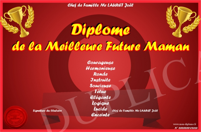 Envoyez par email votre Diplôme de la Meilleure Future Maman personalisé