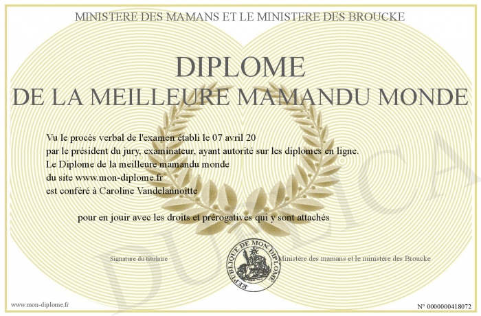 Envoyez par email votre Diplôme de la meilleure mamandu monde personalisé