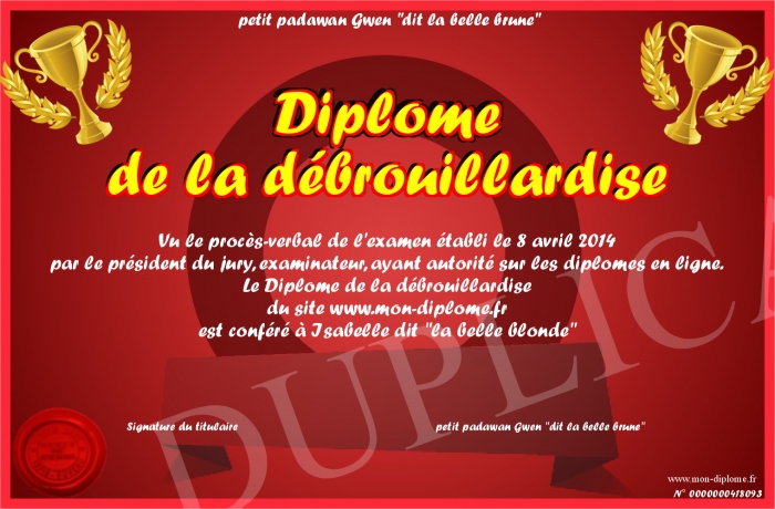 Envoyez par email votre Diplôme de la débrouillardise personalisé