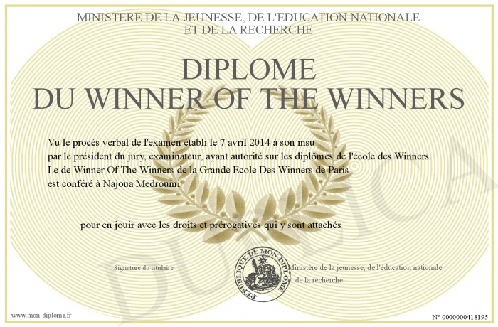 Envoyez par email votre Diplôme du Winner Of The Winners personalisé