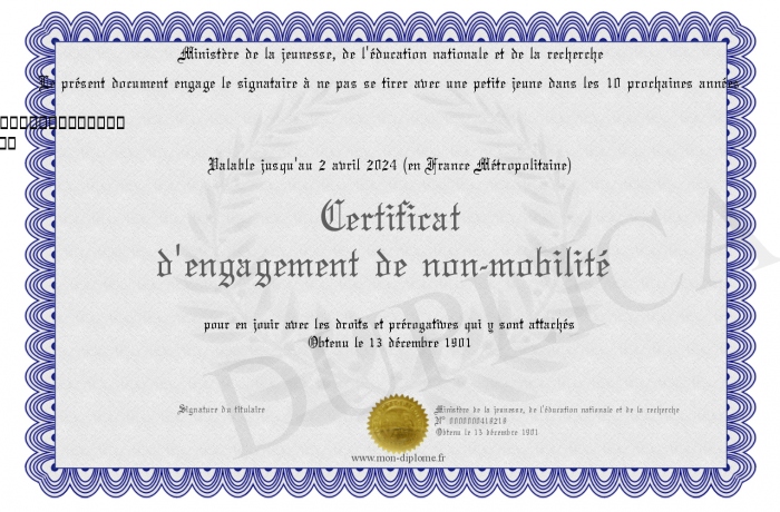 Envoyez par email votre Certificat d'engagement de non-mobilité personalisé