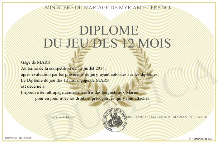 Envoyez par email votre Diplôme du JEU DES 12 MOIS personalisé