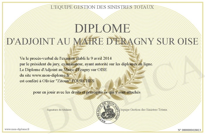 Envoyez par email votre Diplôme d'Adjoint au Maire d'Eragny sur OISE personalisé