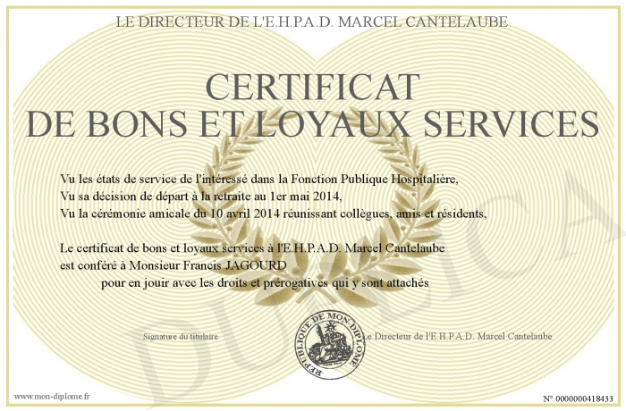 Envoyez par email votre Certificat de bons et loyaux services personalisé