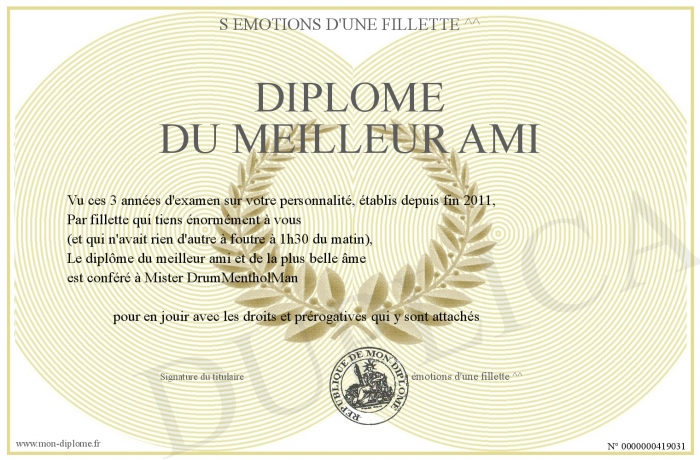 Envoyez par email votre Diplôme du meilleur ami personalisé
