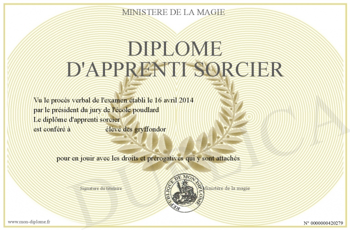 Envoyez par email votre diplome d'apprenti sorcier personalisé