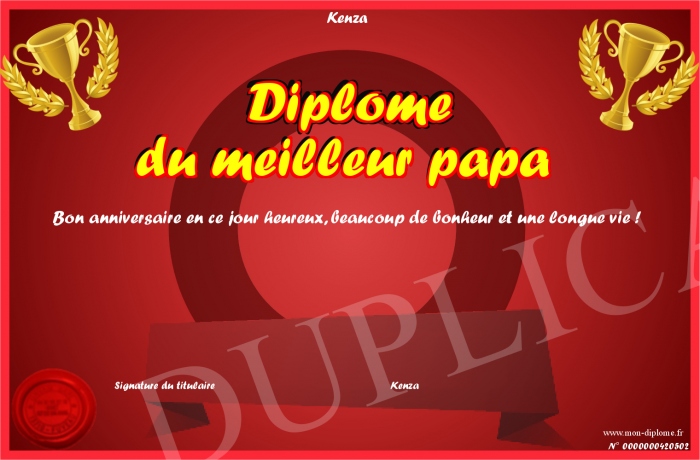 Envoyez par email votre Diplôme du meilleur papa personalisé