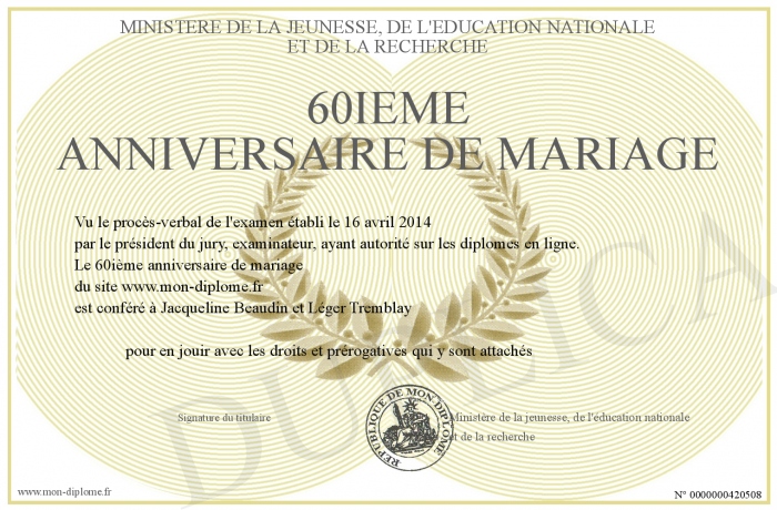 Envoyez par email votre 60ième anniversaire de mariage personalisé