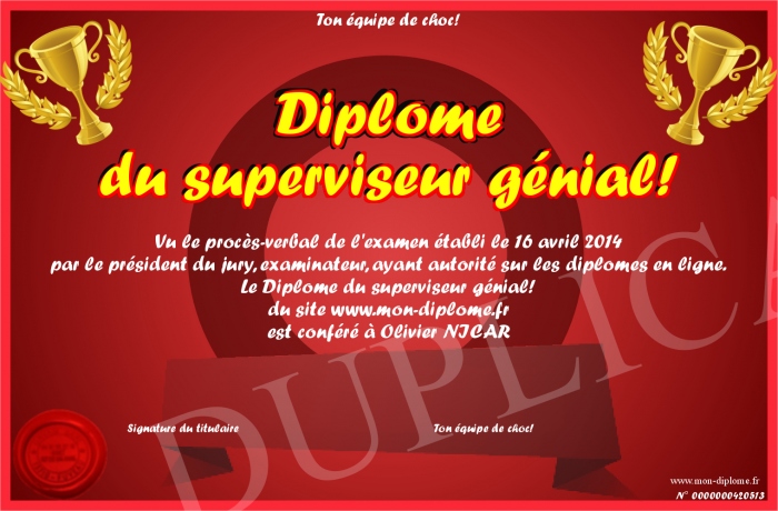 Envoyez par email votre Diplome du superviseur génial! personalisé