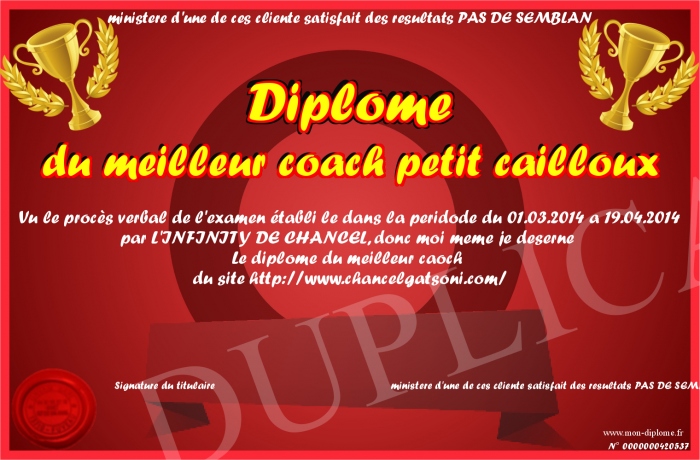 Envoyez par email votre Diplôme du meilleur coach petit cailloux personalisé