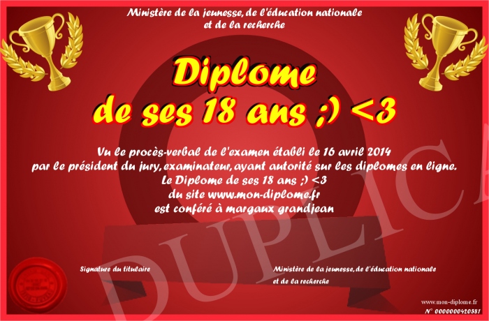 Envoyez par email votre Diplôme de ses 18 ans ;) -3 personalisé