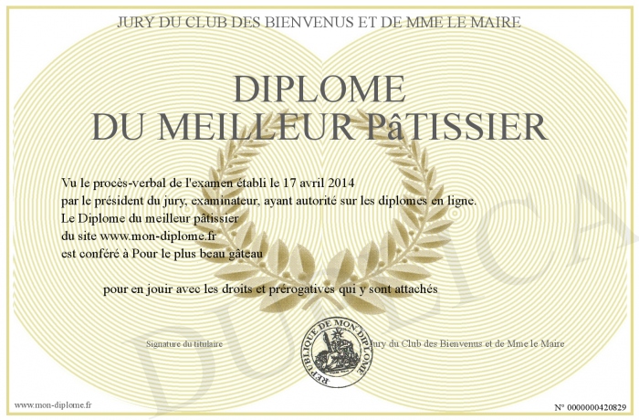 Envoyez par email votre Diplôme du meilleur pâtissier personalisé