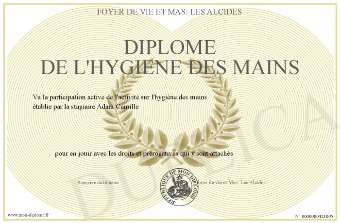 Envoyez par email votre Diplôme de l'hygiène des mains personalisé