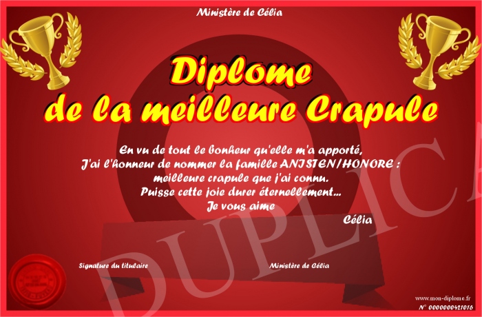 Envoyez par email votre Diplôme de la meilleure Crapule personalisé