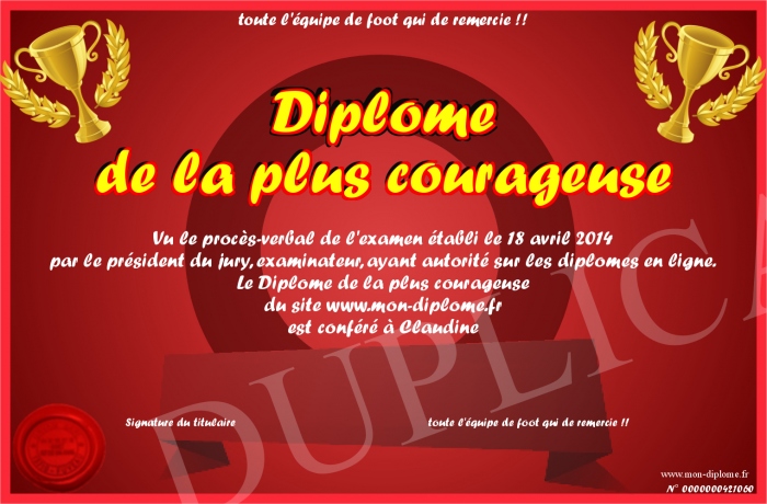 Envoyez par email votre Diplôme de la plus courageuse personalisé