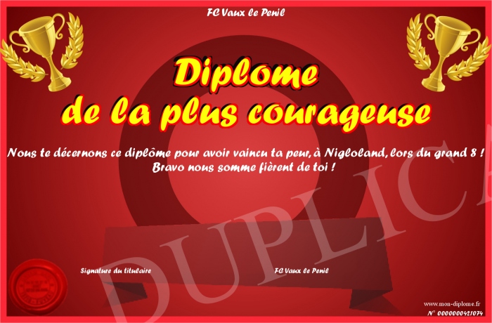 Envoyez par email votre Diplôme de la plus courageuse personalisé