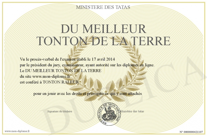 Envoyez par email votre DU MEILLEUR TONTON DE LA TERRE personalisé