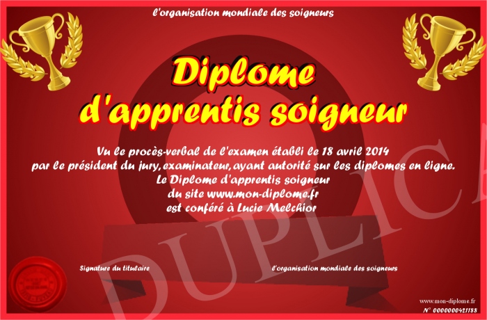 Envoyez par email votre Diplôme d'apprentis soigneur personalisé