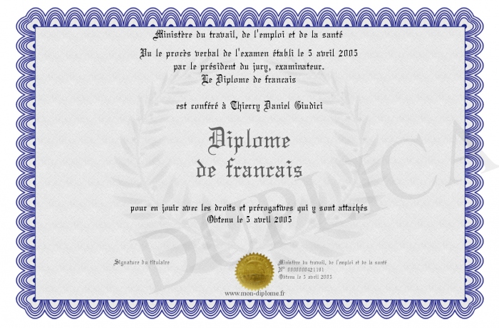 Envoyez par email votre Diplome de francais personalisé