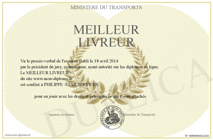 Envoyez par email votre MEILLEUR LIVREUR personalisé