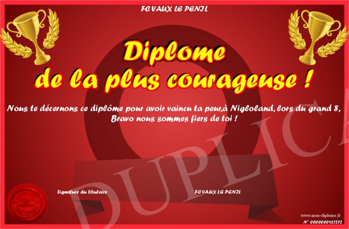 Envoyez par email votre Diplôme de la plus courageuse ! personalisé