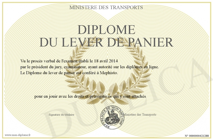 Envoyez par email votre Diplôme du lever de panier personalisé