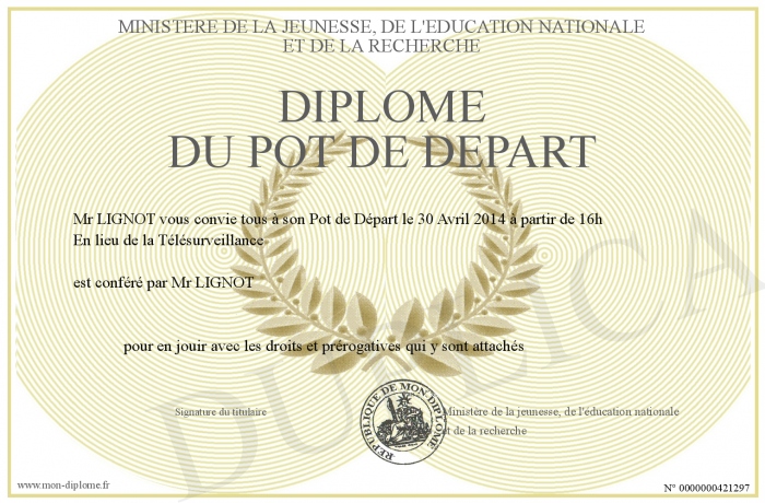 Envoyez par email votre Diplôme du Pôt de Départ personalisé