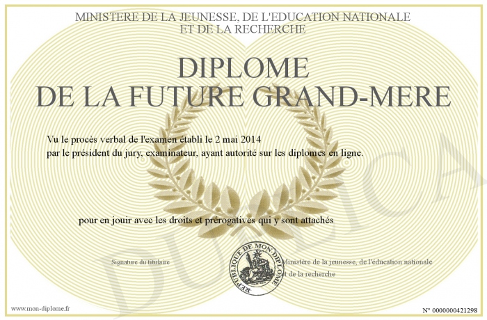 Envoyez par email votre Diplôme de la future grand-mère personalisé