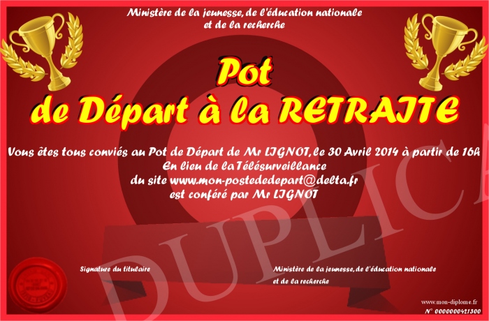 Envoyez par email votre Pot de Départ à la RETRAITE personalisé
