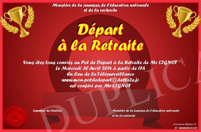 Envoyez par email votre Départ à la Retraite personalisé