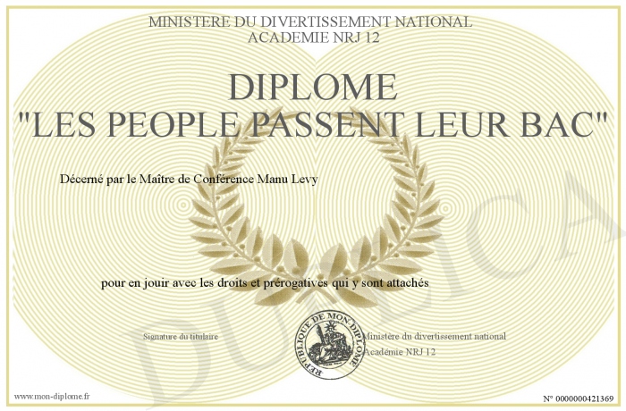 Envoyez par email votre Diplôme -Les People passent leur bac- personalisé