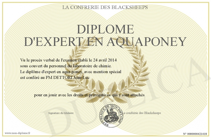Envoyez par email votre Diplôme d'expert en AquaPoney personalisé