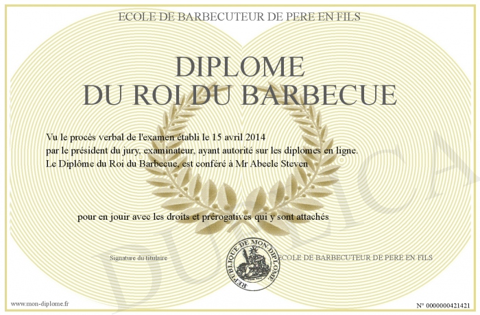 Envoyez par email votre Diplôme du Roi du Barbecue personalisé
