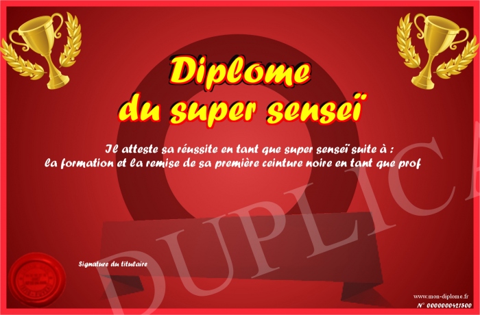 Envoyez par email votre Diplôme du super senseï personalisé