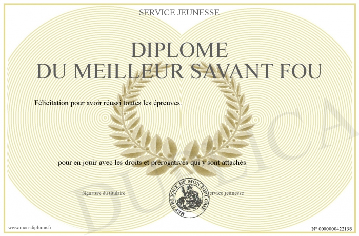 Envoyez par email votre Diplôme du Meilleur savant fou personalisé