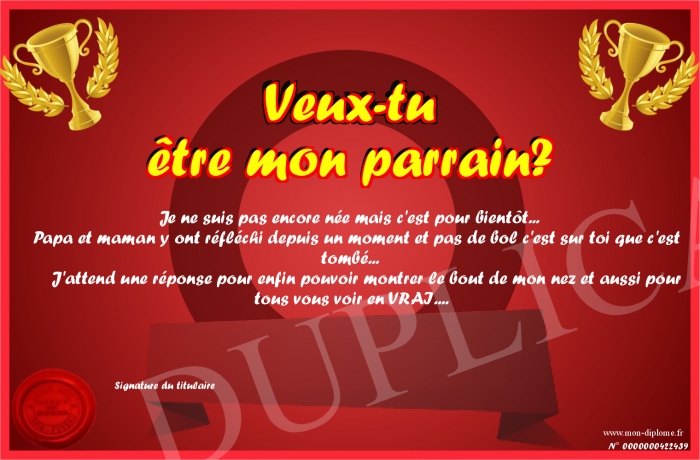 Envoyez par email votre Veux-tu être mon parrain? personalisé