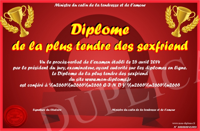 Envoyez par email votre Diplôme de la plus tendre des sexfriend personalisé