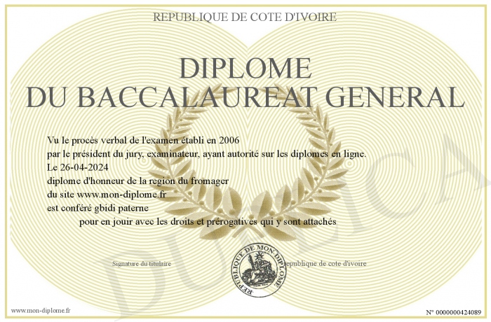 Envoyez par email votre Diplôme du baccalaureat général personalisé