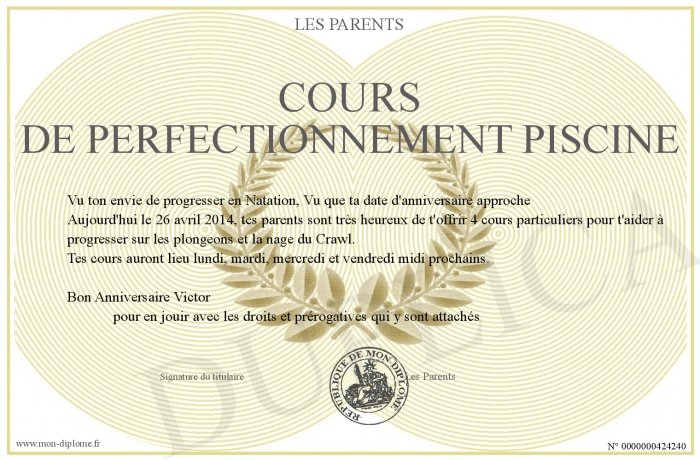 Envoyez par email votre Cours de Perfectionnement Piscine personalisé