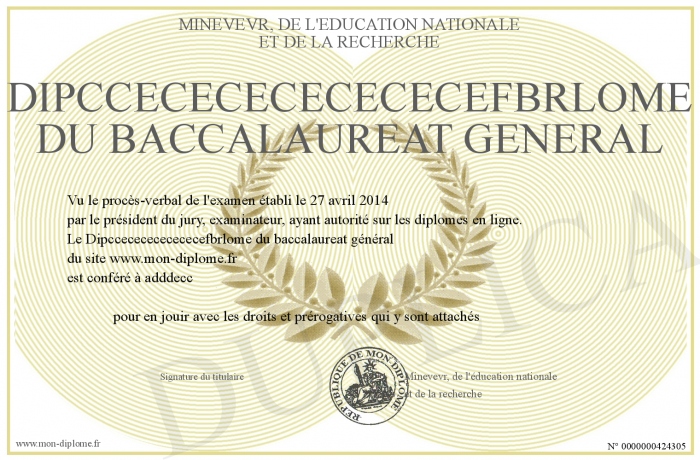 Envoyez par email votre Dipccececececececefbrlôme du baccalaureat général personalisé