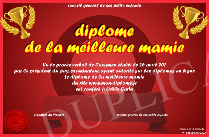 Envoyez par email votre diplome de la meilleure mamie personalisé