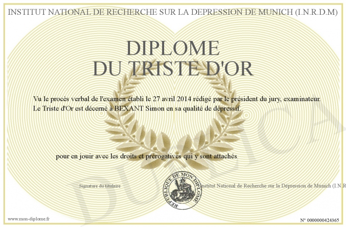 Envoyez par email votre Diplôme du Triste d'Or personalisé