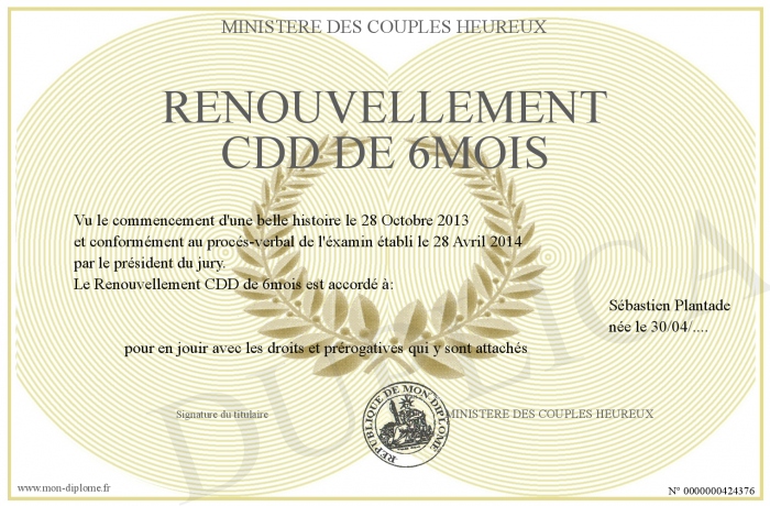 Envoyez par email votre Renouvellement CDD de 6mois personalisé