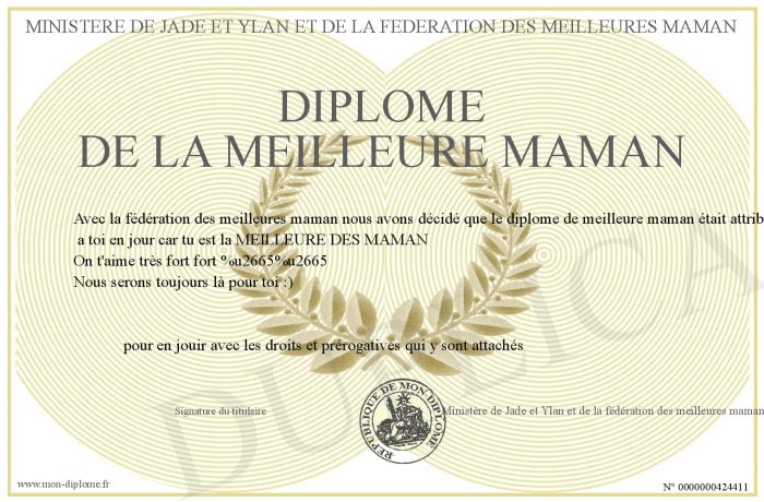 Envoyez par email votre Diplôme de la meilleure maman personalisé